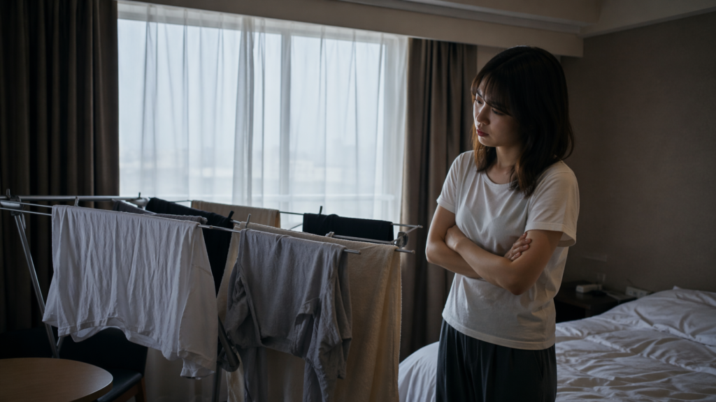 雨の日にホテルで部屋干しをすると、
