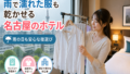 雨の日のUSJでは、服や靴が濡れてホテルで困るケースもあります。