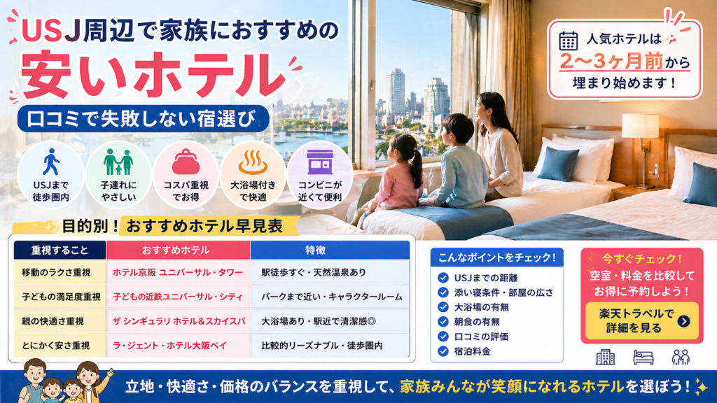 USJ周辺で家族向けの安いホテルを探すなら、